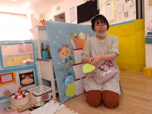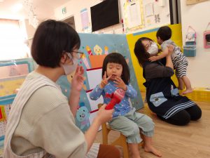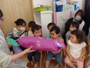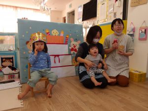 ふたばぐみのお友だちは先生が代わりに「1さいです❤」と教えてくれました。