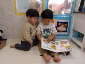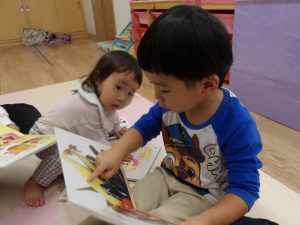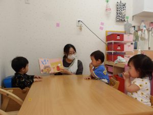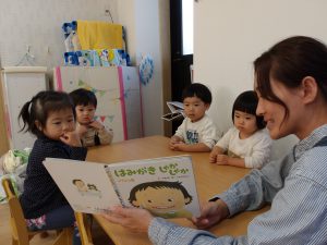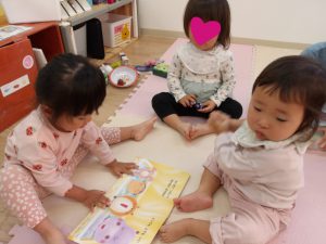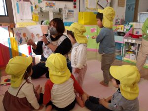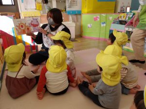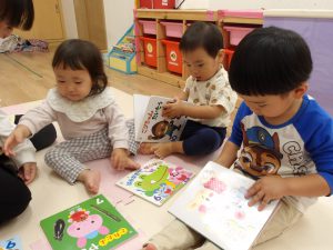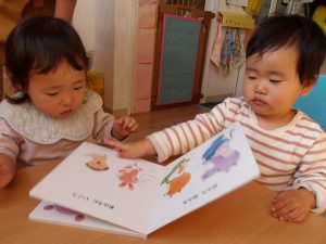 先生に読んでもらったり、自分たちでページをめくったりしながら
