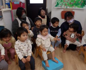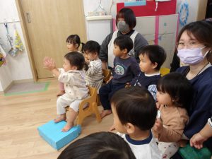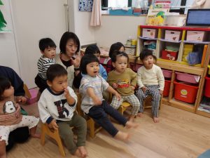 今月はみんなで♪おもちゃのチャチャチャのパネルシアターを見た後に、