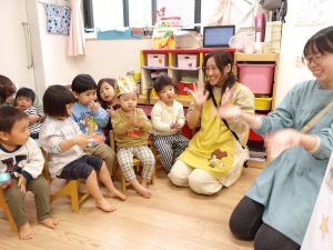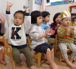 マラカスや指鈴などを手にして、リズムに合わせてフリフリシャカシャカ~♪♪