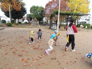 はちまきを使った忍者ごっこ、しっぽとり。むっくりくまさんなどなど。