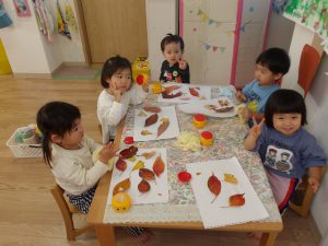 とっても素敵な落ち葉アートが完成しました。🍂🍃🍂🍃