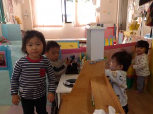 今日はたいようぐみ(2歳児)の部屋へ、お邪魔してみました。