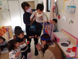 今週は空気が冷たく、風も強いので室内遊びを楽しみながら過ごしています。