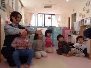 絵カードを使ってどんな顔?何色?ゲームをしたり、