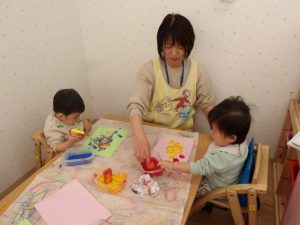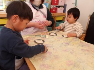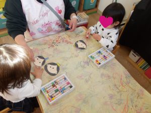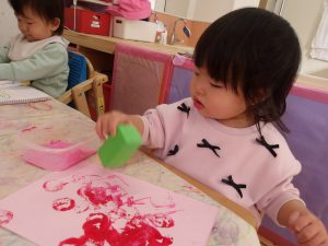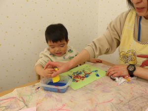 お絵描きしたり、絵の具をつけてスタンプしたり。
