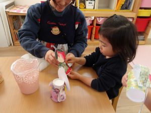 どのクラスも先生と一緒に、遊びを通して制作を楽しみました。