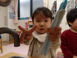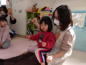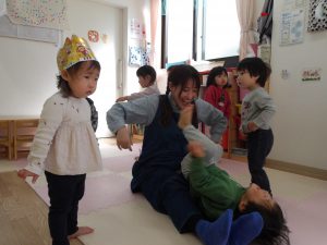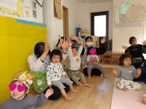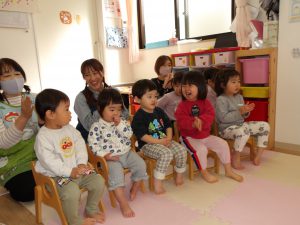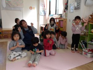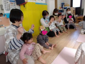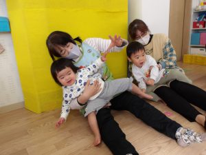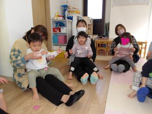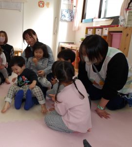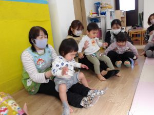 今月の出し物は、みんなで触れ合い遊び。