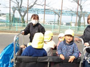 そらぐみ、ふたばぐみのお友だちは保育所へ戻ってから食べました。