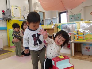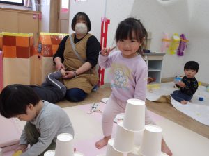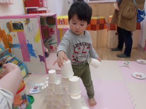 積んで遊ぶ姿が見本となって、どんどん挑戦!!