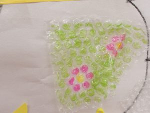 シールやプチプチ、ストローなどが貼って楽しめるようにしてありました。