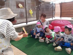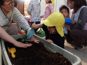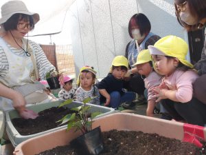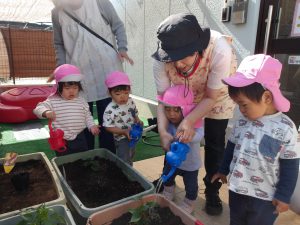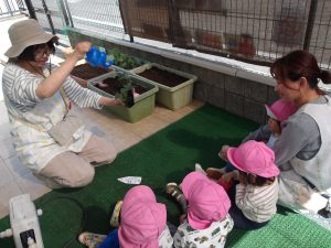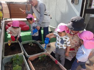 さつまいもにお水をシャワシャワ~ってかけてあげてね~