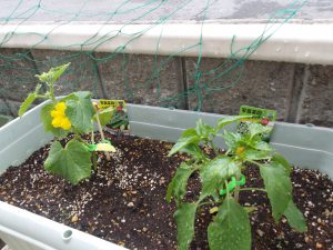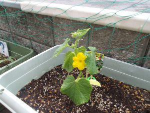 すくすくと生長し、きゅうりはもう花がついてびっくり!!
