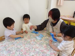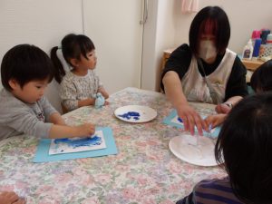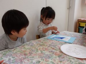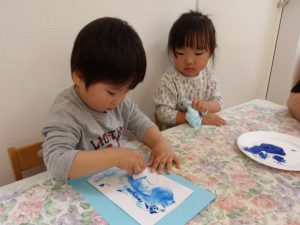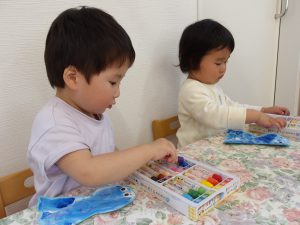 どんどん色をつけていき、スポンジ遊びを楽しんだ後日に???