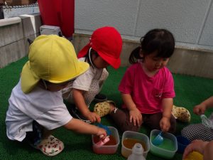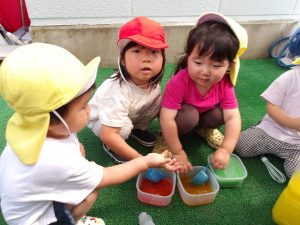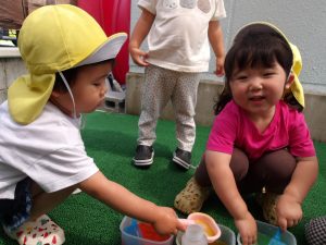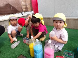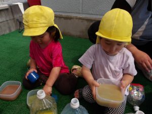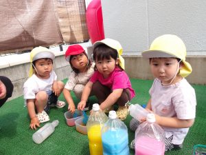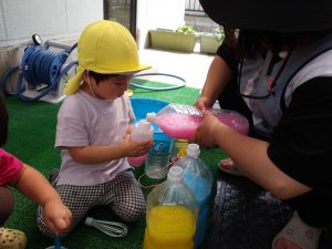 そんな声が聞こえてきそうな色水遊びの様子でした。😊
