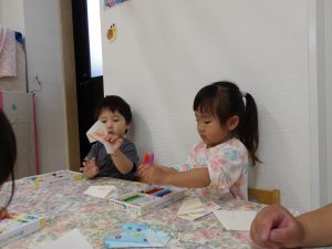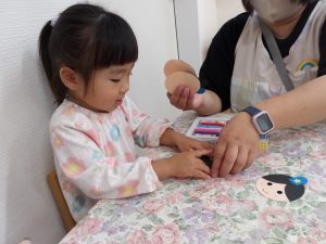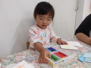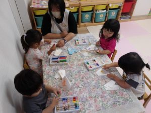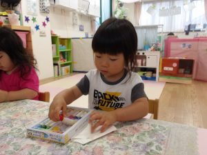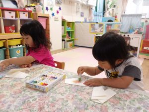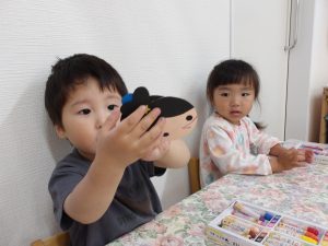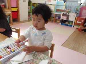 たいようぐみ(2歳児)のお友だちがお絵描き。