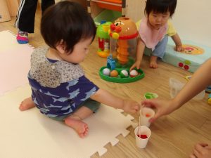選んだ色を、トイカプセルの中に入れてもらったよ。