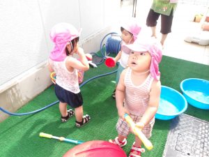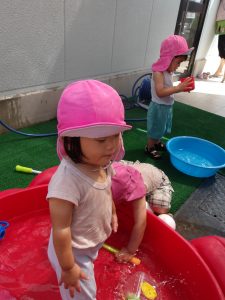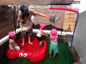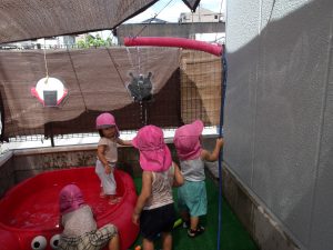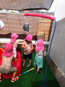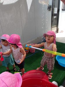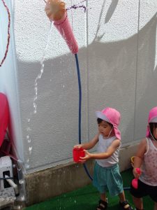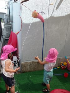 ミストとは違う水の流れに、子どもたちは大喜び。✨✨