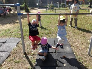 いつの間にか、鉄棒につかまる力も育っていてびっくり。
