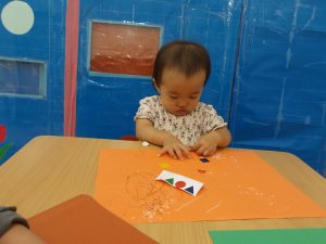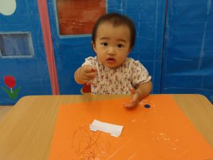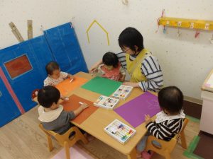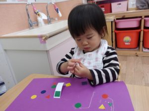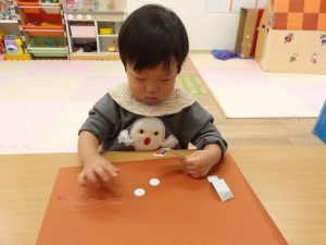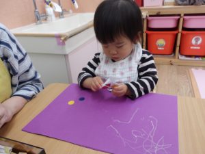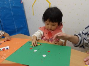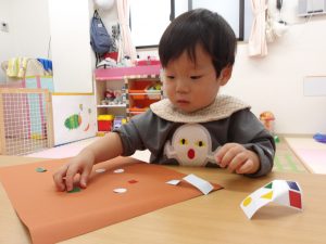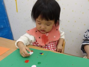 フィリオ便り シール遊び。【ふたばぐみ】 2025年10月25日 今日はみんなでシール遊び。 貼って、剥がしてを繰り返しながらペタペタ。ペタペタ。 みんなが集中しながら遊んだシール遊びの画用紙を、 先生が秋の果物、野菜にアレンジ。✨✨ ふたばぐみに秋がやってきました。😊