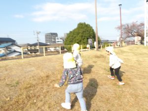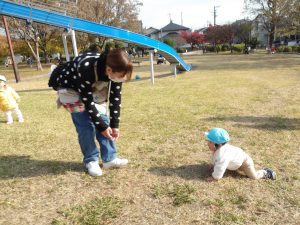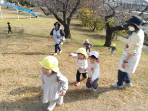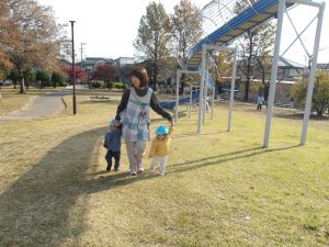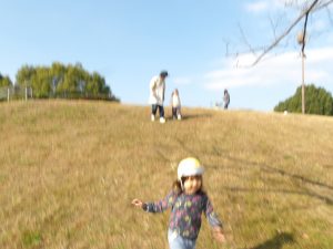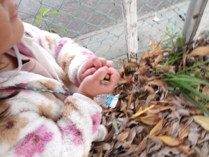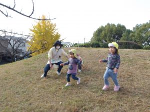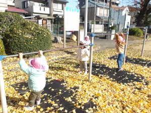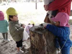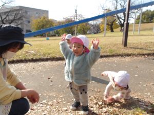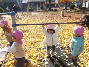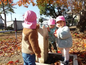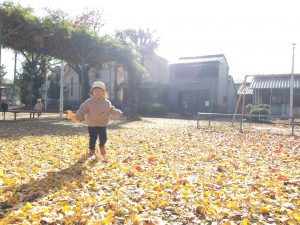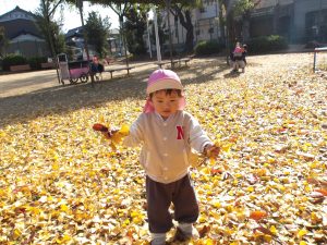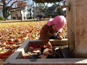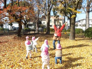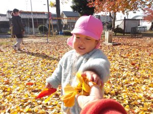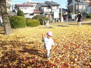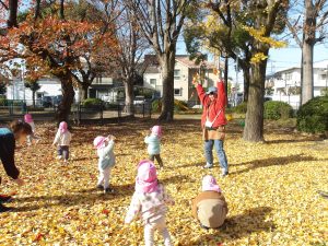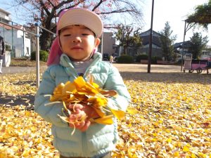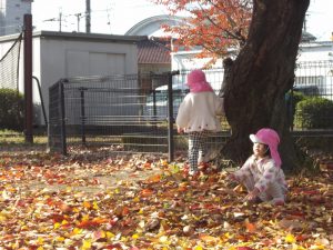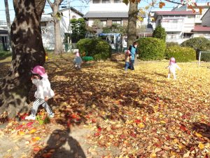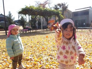 落ち葉シャワーを楽しんだり、黙々と木の実探しを楽しんだりと大忙し。