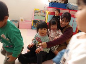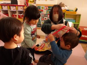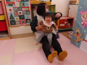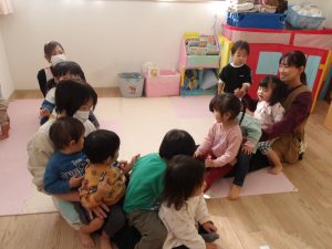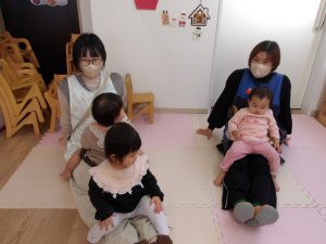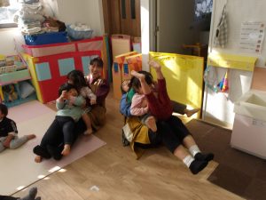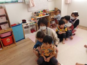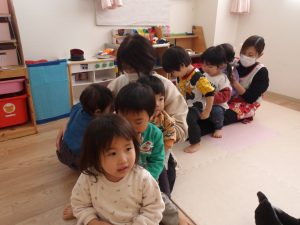 今月はみんなで「バスに乗って」の曲に合わせてバスごっこ。🚌