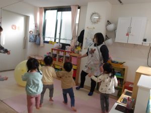そらぐみとたいようぐみの部屋をいったりきたり。