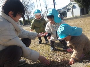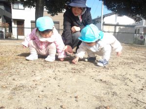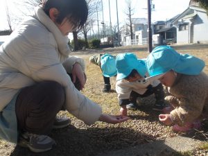 い~っぱいどんぐりがあるところ、みつけたよ。