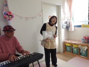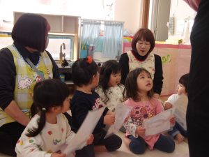 動物絵カードを使っての鳴き真似や、