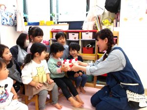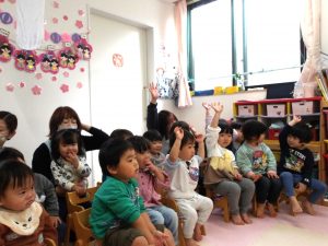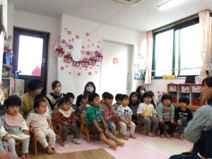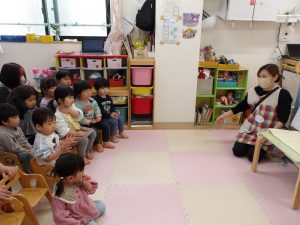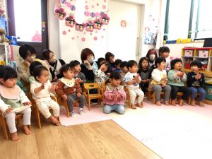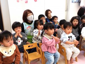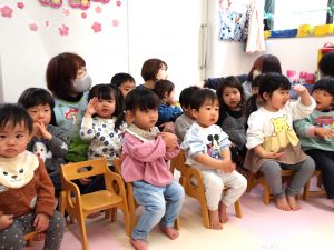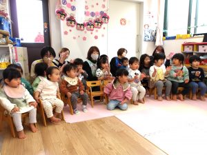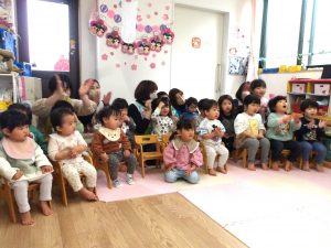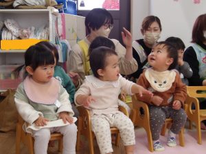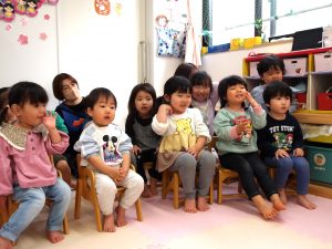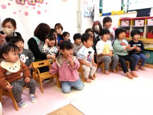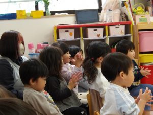 一緒に歌いながら、リズムに合わせて言葉のかけあいを繰り返し楽しみました。😊