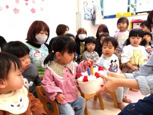 歌と拍手でお祝いしてもらいました。