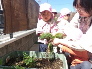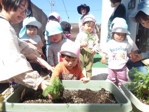 去年の秋に植えた、ミニミニにんじんもどうかなぁ~