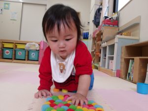 今日はでこぼこしたところを、ハイハイしてみるね。